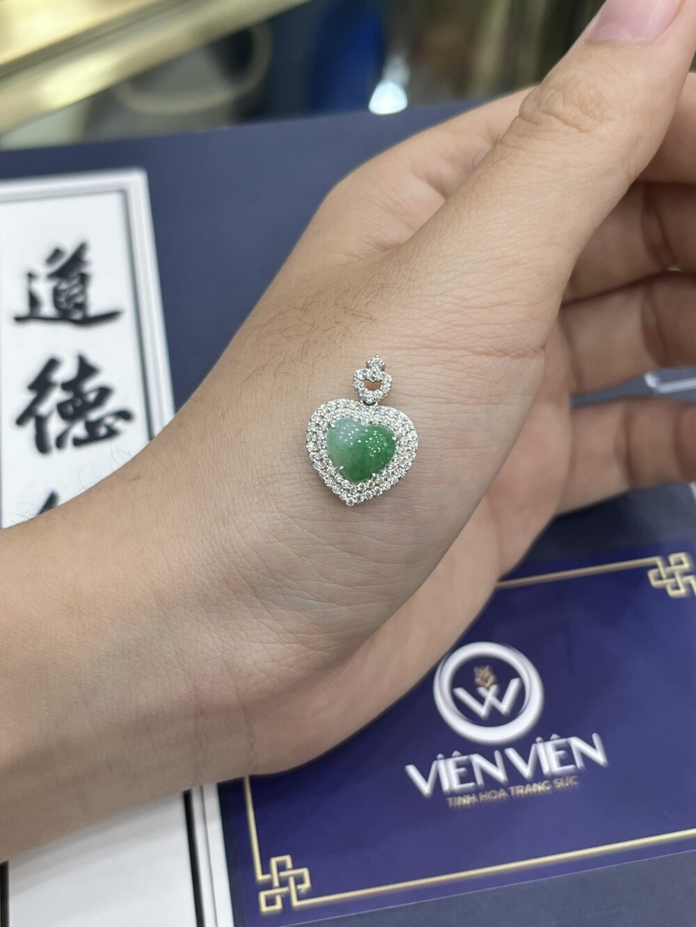 Dây chuyền mặt trái tim phỉ thuý – DP012