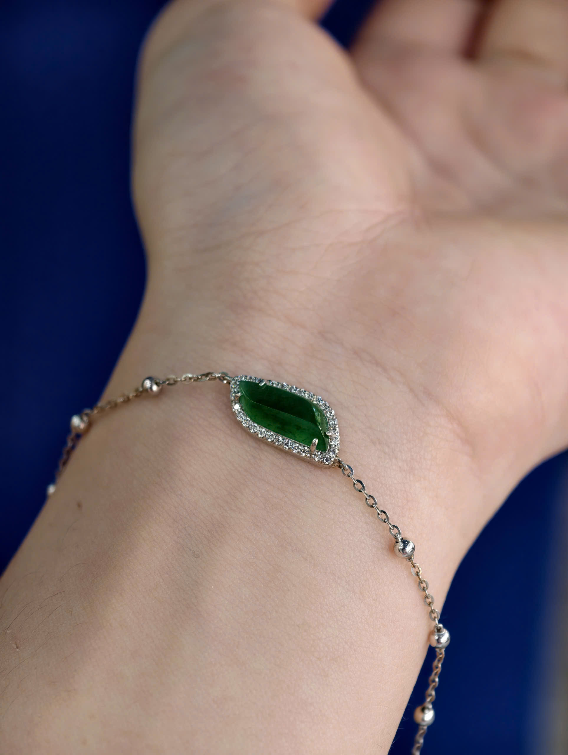 Lắc tay bạc phỉ thuý mắt ngựa xanh đậm -LP183